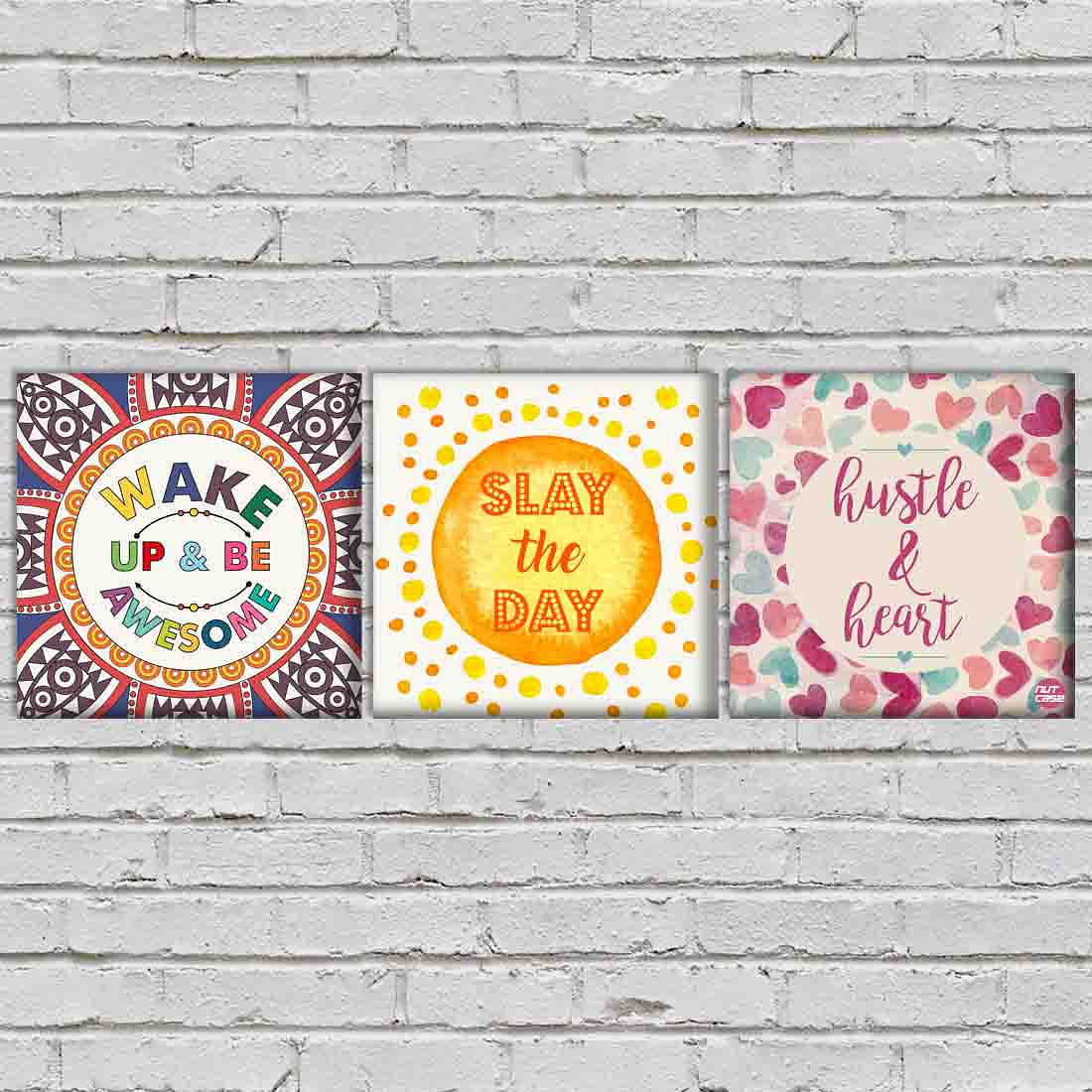 Wall Art Decor Hanging Panels Set Of 3 -Wake Up And Be Awesome