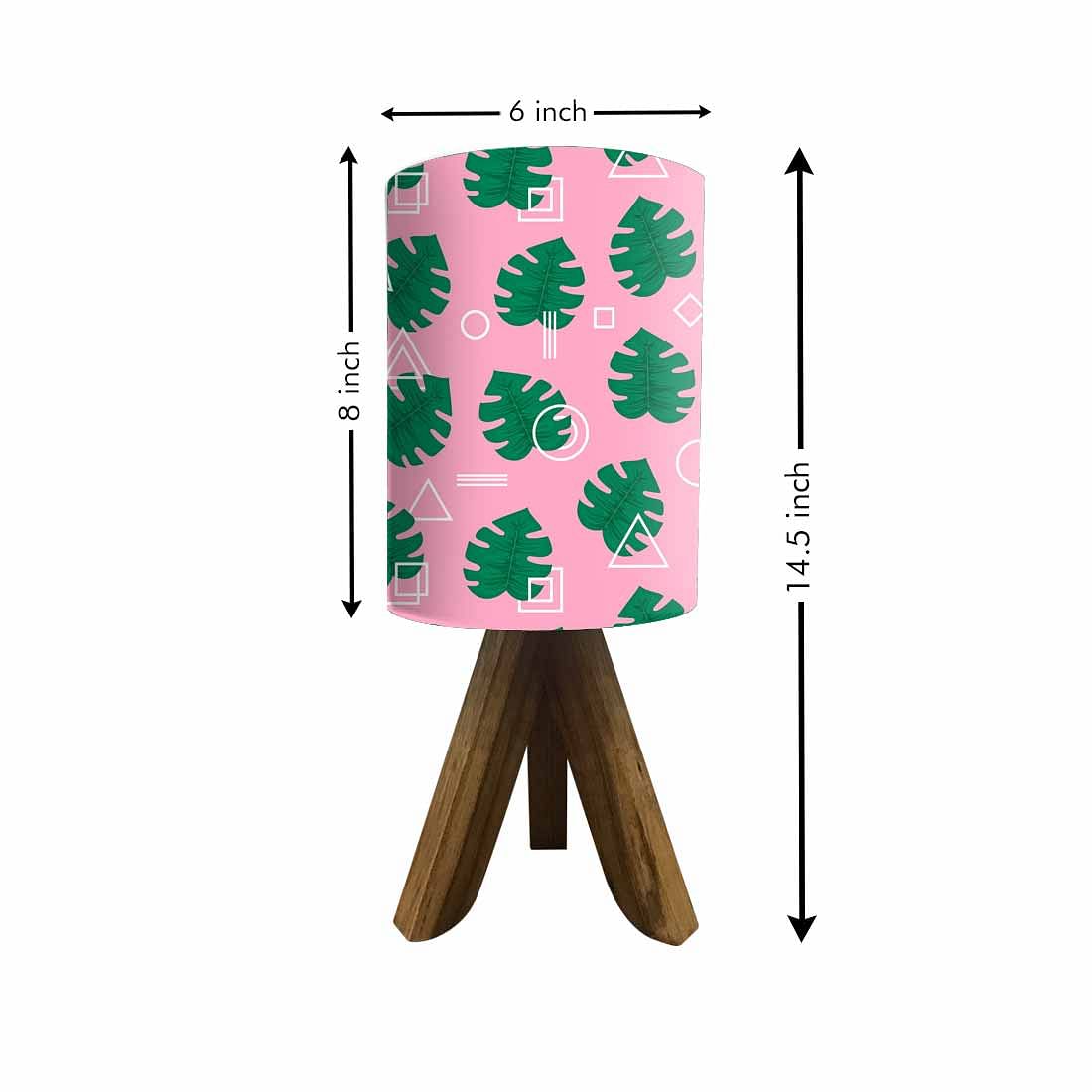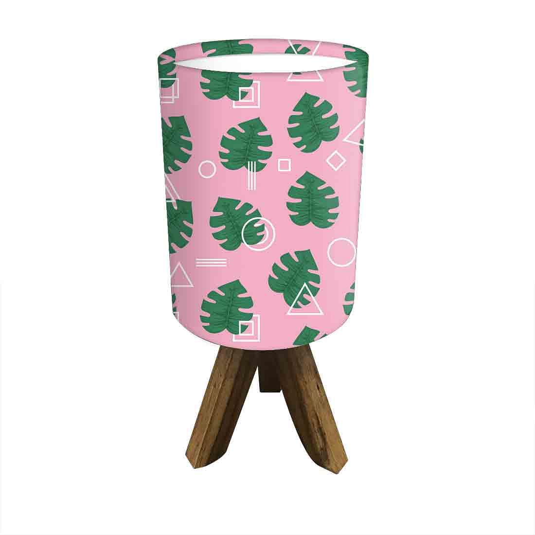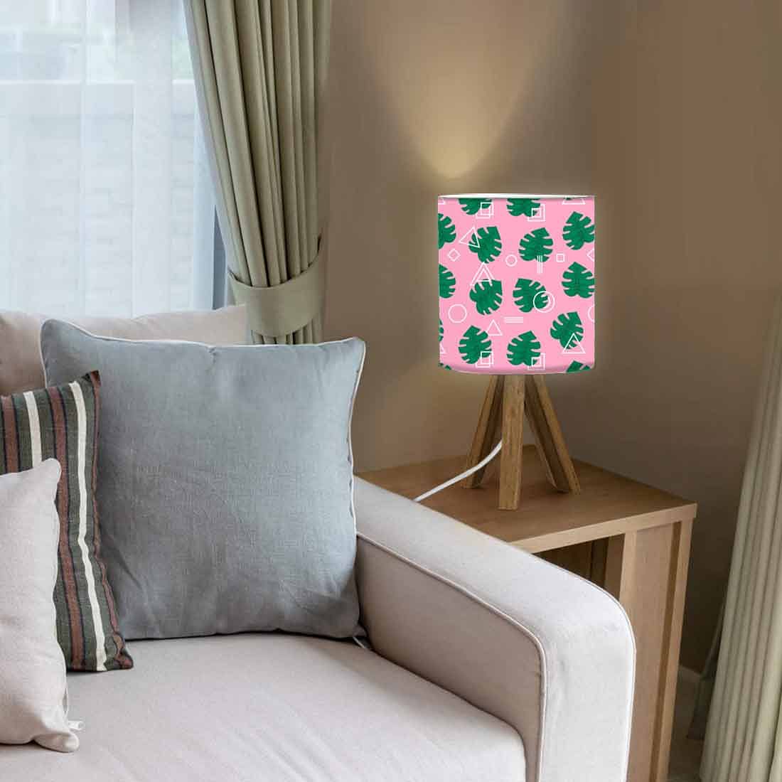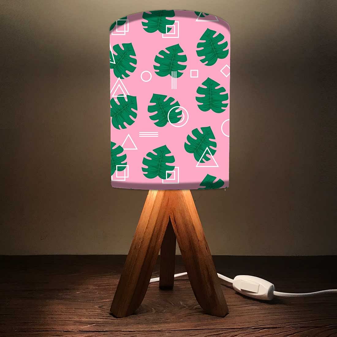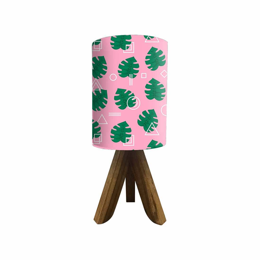 Wooden Table Lamps For Bedroom - Monstera Designs Pink (3W LED Bulb Included)