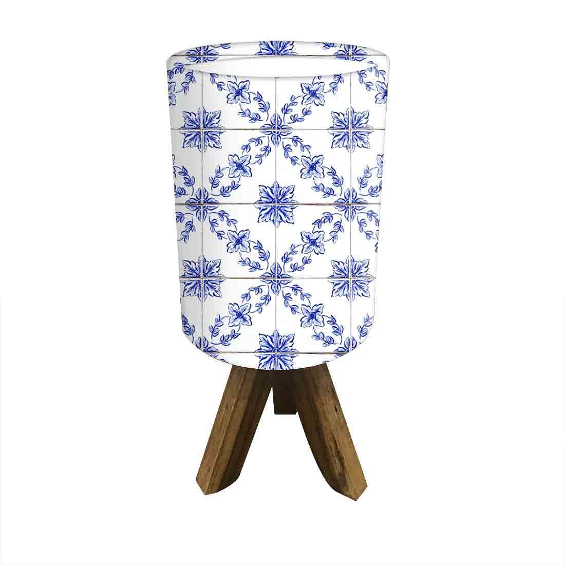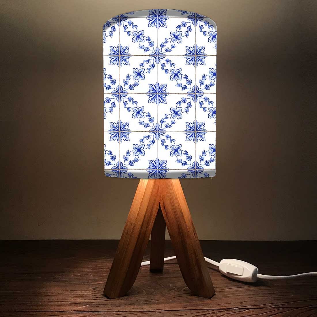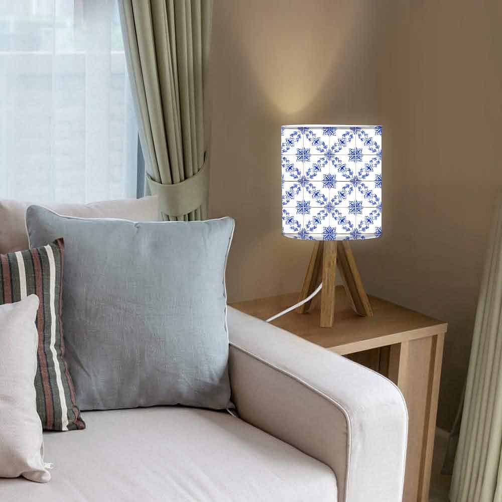 Wooden Table Lamp For Bedroom-White Flower Tiles (3W LED Bulb Included)