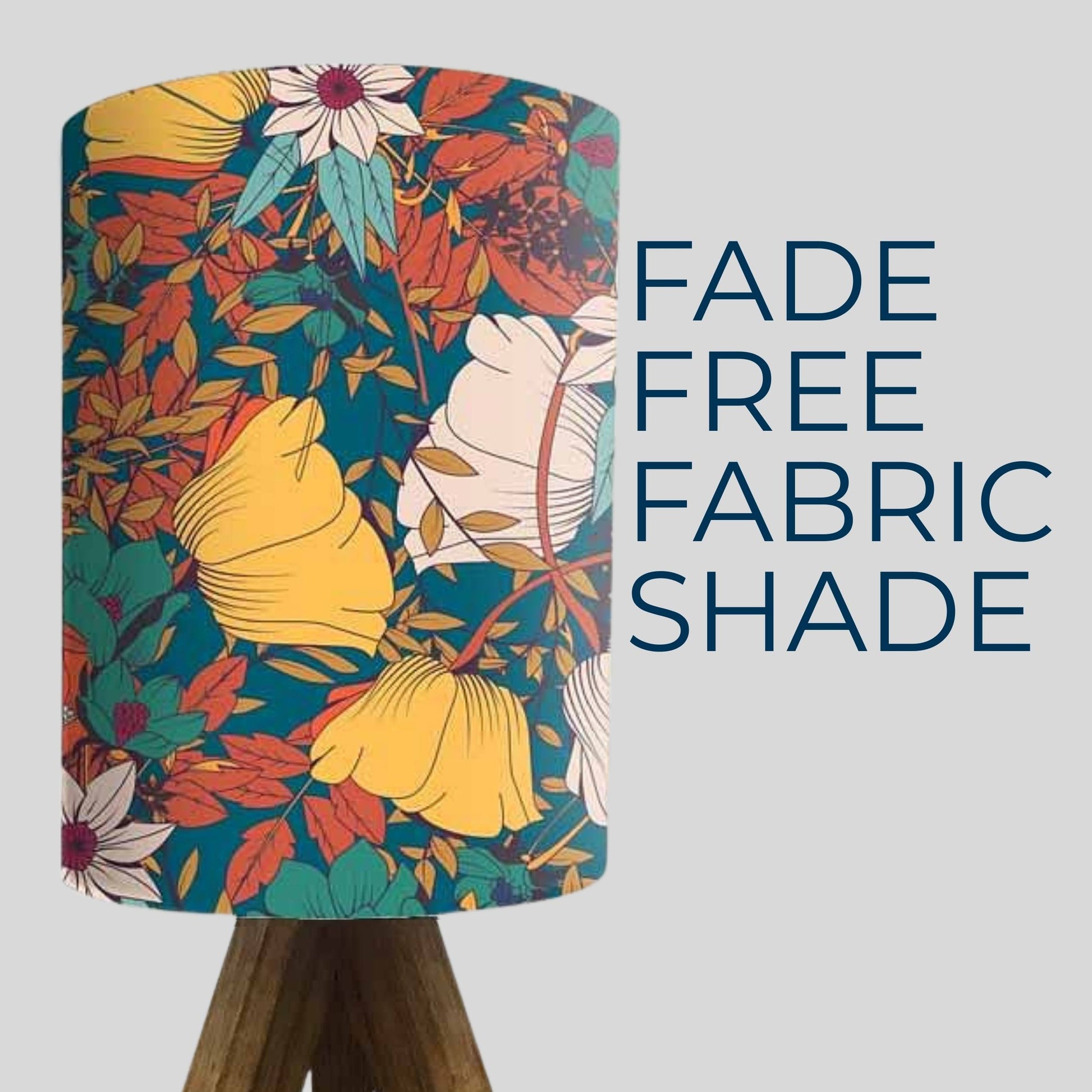Striking colours and a refined teak base make this lamp a statement piece, even when it’s not lit.