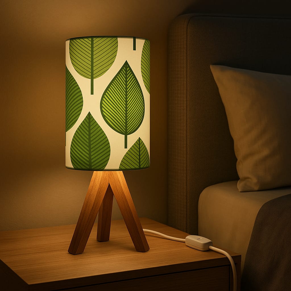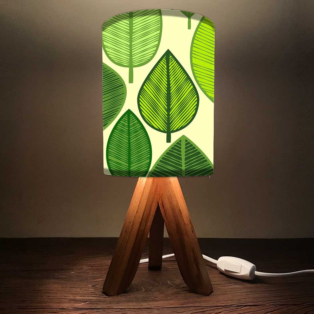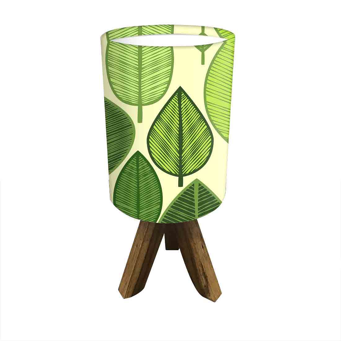 Mini Wooden Tripod Table Lamp For Bedroom Living Room-Green Leaves (3W LED Bulb Included)