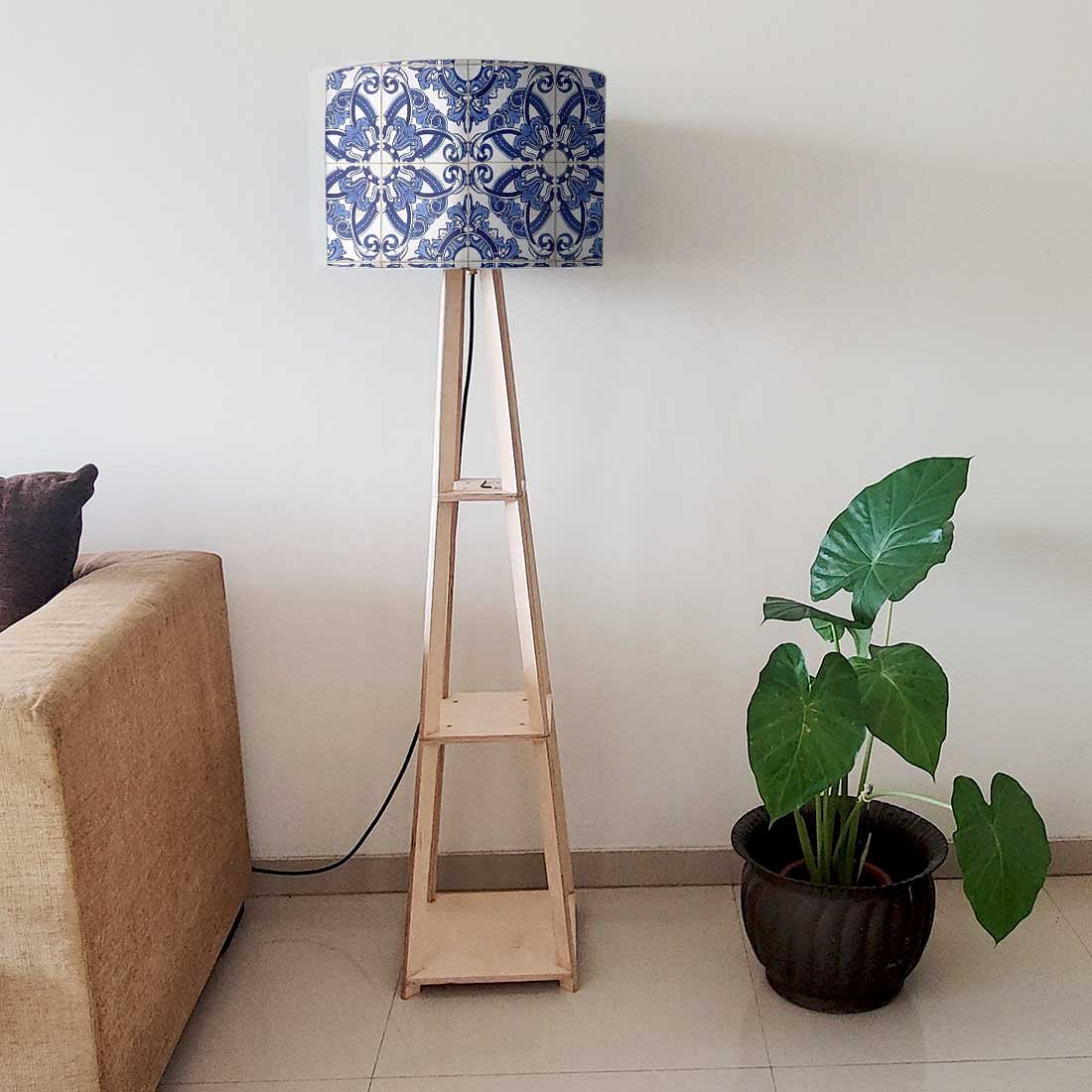 Nutcase Wooden Tripod Living Room Light Lamp with Shelves is more than just a furniture piece, it is an art that will add color as well as light to your home. This European Birch wood floor lamp is ideal for bedrooms as well as living room. Made in India with high quality materials. It is easy to assemble and available in 100s of designs.