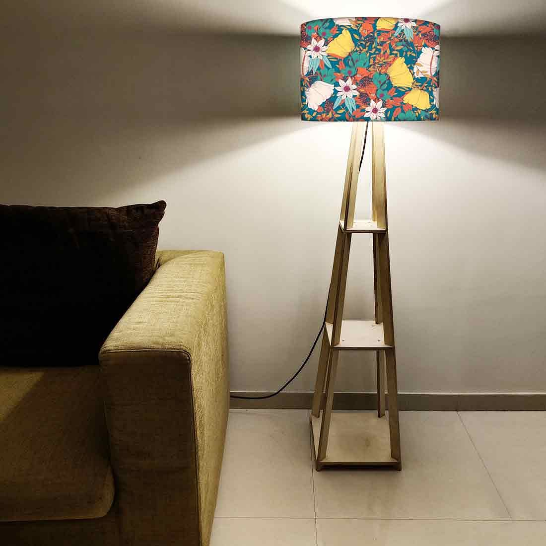 Nutcase Wooden Tripod Floor Lamps with Shelves is more than just a furniture piece, it is an art that will add color as well as light to your home. This European Birch wood floor lamp is ideal for bedrooms as well as living room. Made in India with high quality materials. It is easy to assemble and available in 100s of designs.