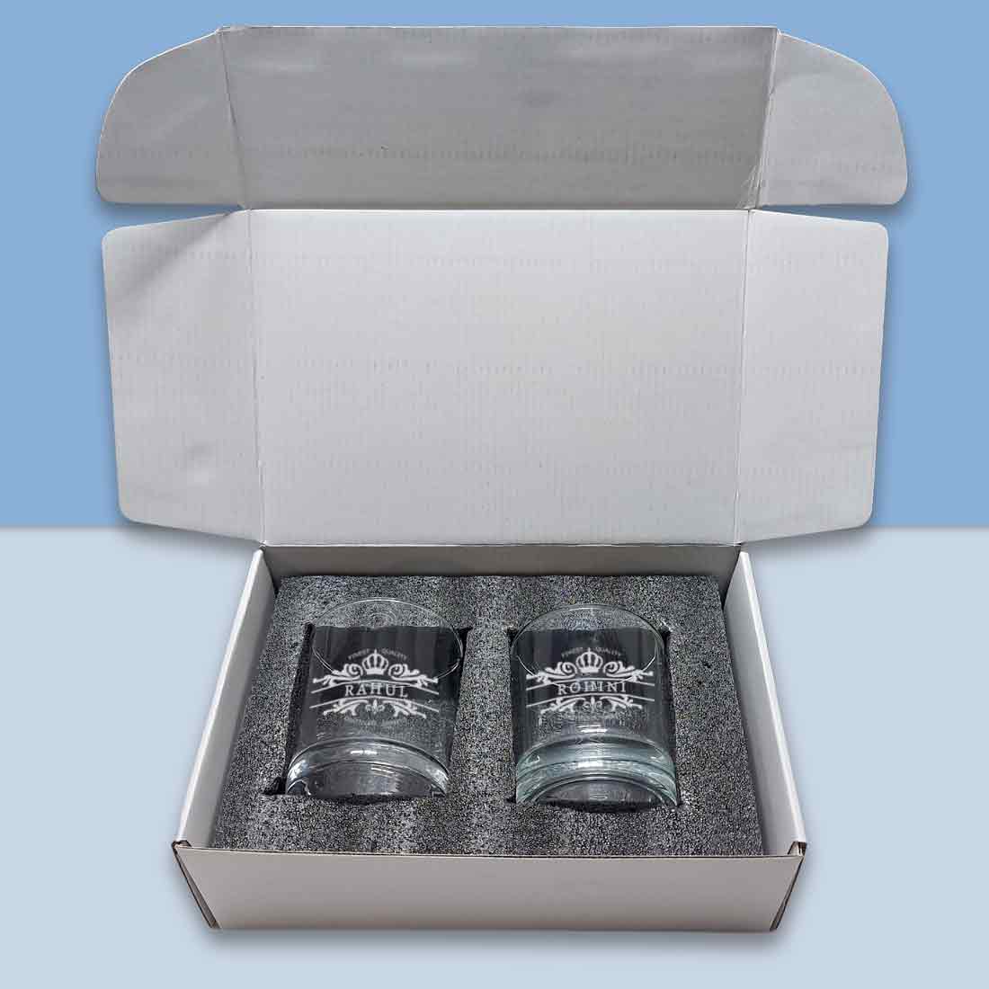 - Print or Engrave: Nutcase Personalize Whiskey Glasses are available in Print or Engraved Options. If you want black font on your glass, select PRINT, if you want Whitish effect please select ENGRAVED.