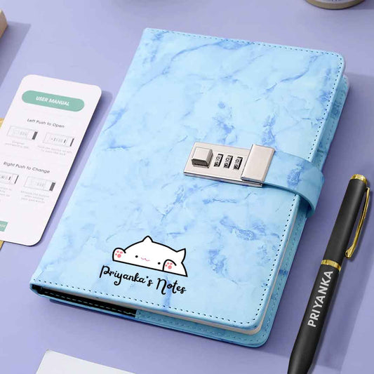 Customized Cute Diary with Lock - Marble Design Diaries with Pen