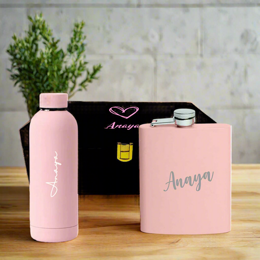 Black/Pink Gift Box for Her with Pink Temperature Tea Coffee Flask Bottle, Jewellery Box & Chocolates